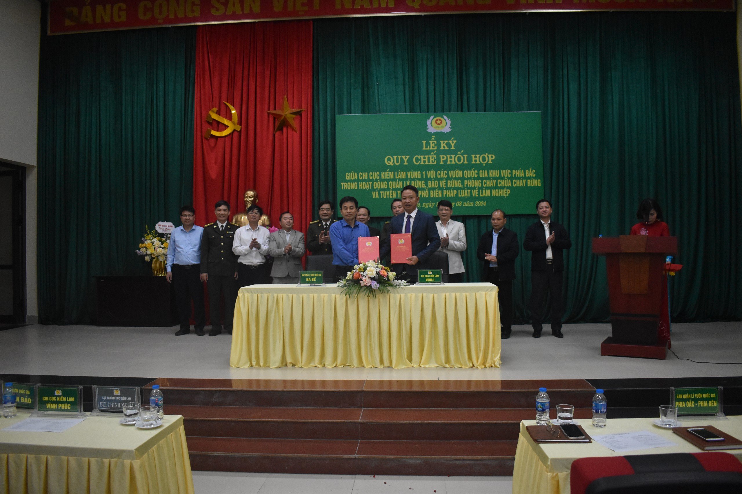 Ngày 08/3/2024, tại tỉnh Vĩnh Phúc, Chi cục Kiểm lâm Vùng I tổ chức Hội nghị bàn, ký Quy chế phối hợp giữa Chi cục Kiểm lâm Vùng I với các Vườn quốc gia khu vực phía Bắc trong hoạt động quản lý rừng, bảo vệ rừng, phòng cháy chữa cháy rừng và tuyên truyền phổ biến Pháp luật về lâm nghiệp. Dự Hội nghị có đồng chí Bùi Chính Nghĩa, Bí thư Đảng ủy, Cục trưởng Cục Kiểm lâm; đại diện lãnh đạo các phòng, ban thuộc Cục Kiểm lâm; Lãnh đạo Chi cục Kiểm lâm tỉnh Vĩnh Phúc; Lãnh đạo, công chức, viên chức và người lao động thuộc 08 Vườn quốc gia Tam Đảo, Hoàng Liên, Xuân Sơn, Phia Oắc-Phia Đén, Bái Tử Long, Cát Bà, Ba Bể, Du Già; Lãnh đạo Chi cục, đại diện các phòng, đội thuộc Chi cục Kiểm lâm Vùng I.
