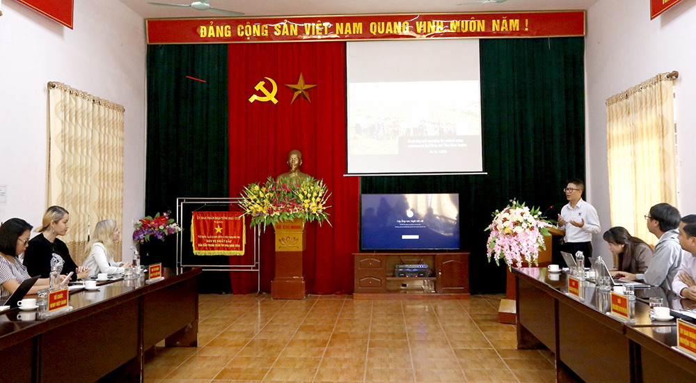 Trong khuôn khổ chương trình làm việc, đoàn công tác đã khảo sát thực địa dự án bảo tồn tài nguyên nước tại xóm Cỏi, xã Xuân Sơn.