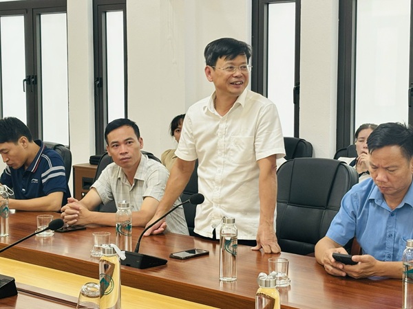 (Đồng chí Trần Ngọc Cường - Giám đốc - phát biểu tại buổi làm việc giữa hai đơn vị)
