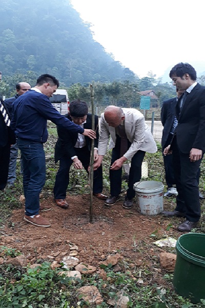Tham gia trồng cây hoa Anh Đào: có Lãnh đạo Sở Ngoại vụ; VQG Xuân Sơn và đại diện Nhật Bản